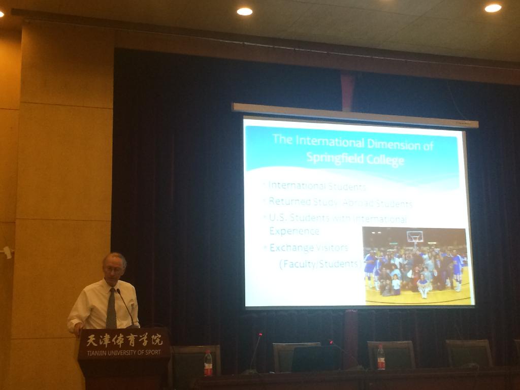 2016年5月23日上午,美国春田学院沃(Dr.Wall)教授和周鹏博士分别为我校师生做了题为“教练员的领导能力”和“NCAA模样”的学术讲座。报告会由研究生部副主任金亚虹主持。