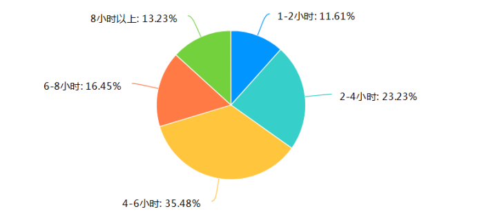 2.从学习时长方面,35.48%的学生每天学习4-6小时,29.68%的学生每天学习6-8小时以上。数据显示大部分学生能坚持学习,保持了相对稳定的学习时间投入。