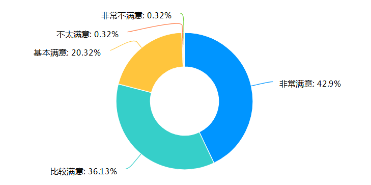 4.在学生学习自我满意度方面,99%的学生对学习状态、学习收获等基本情况表示“非常满意”“比较满意”或“基本满意”,学生对学习显示出较高的自我满意度,说明学生在熟悉教学平台使用后,学习渐入佳境。